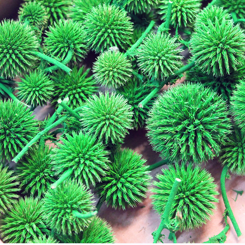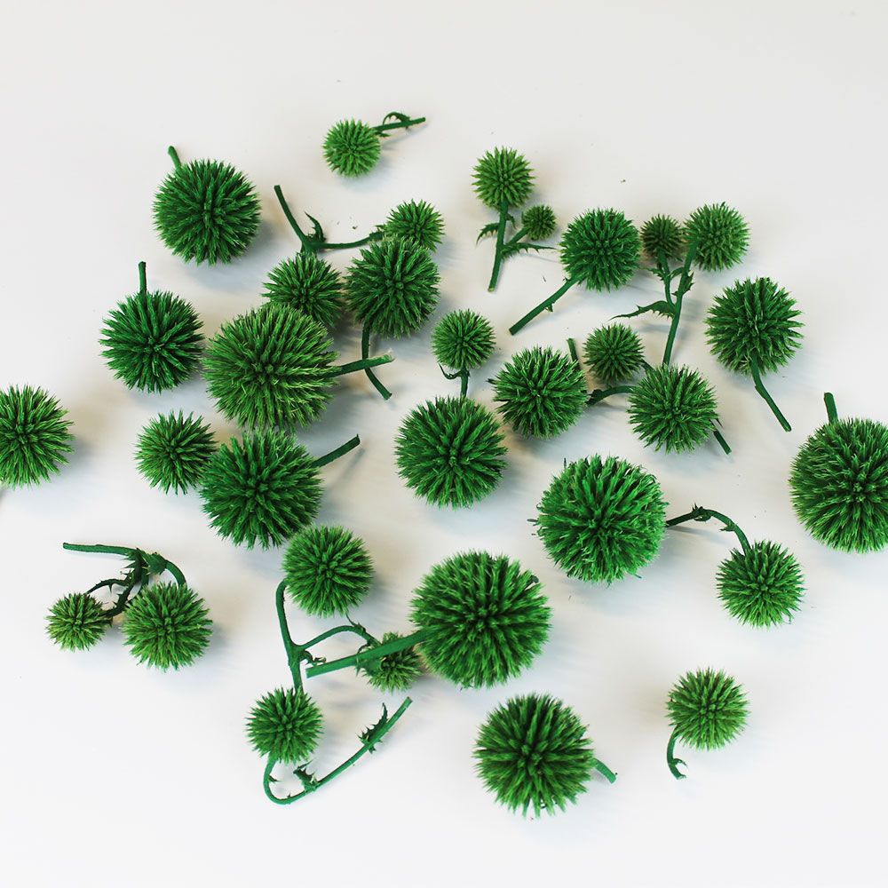 Природний сухоцвіт кульки мордовника пофарбовані в зелений колір. У упаковці близько 25-30 шт. Діаметр близько 1-4 см