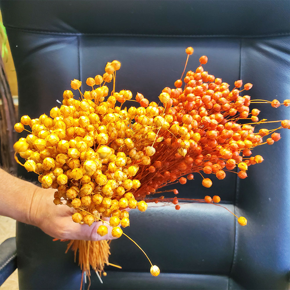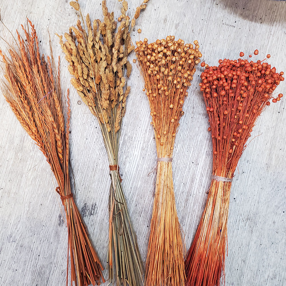 Сухоцвіти фарбовані оранжеві, жовті колоски в букетах